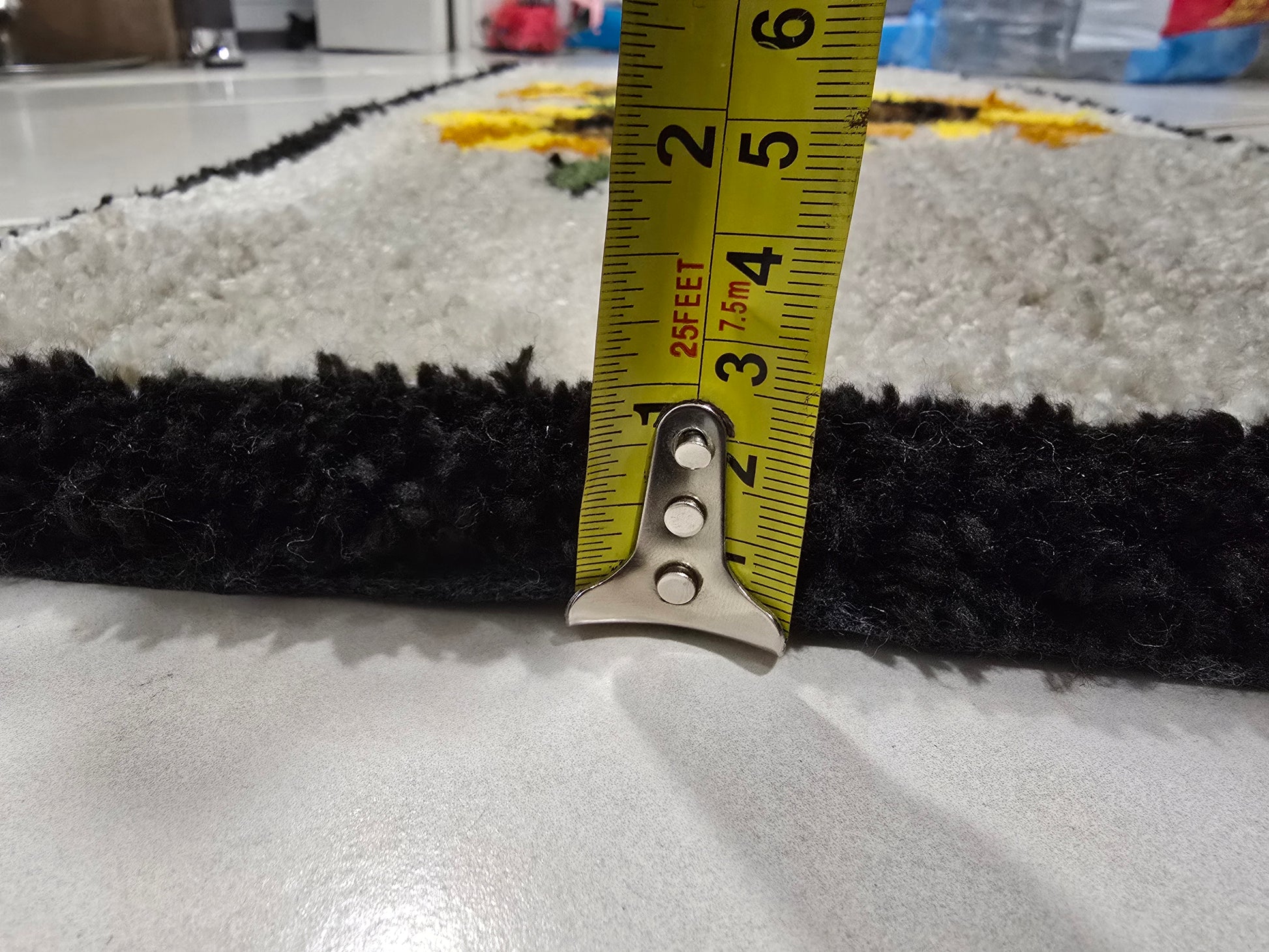 Our handmade rug, a unique piece, a high-quality product that stands out from mass-produced options on the market, undergoes a shearing and contour-defining process. It is made of soft but durable materials designed to withstand regular foot traffic. The hand-profiled details ensure a level of detail and precision unmatched by machine-made options. Measuring 27 x 14 inches with a 2 cm pile height, the rug is compact enough for a bedroom, bathroom, or larger area. Our handmade rug is a subtle addition to any home, with its non-slip base providing better stability, easier rug cleaning, and longer durability. It can be used as a decorative item in a bedroom, children's room, or as a decorative piece in a bathroom. Your carpet was crafted with care and attention to detail, designed to enhance the performance of the pieces by American entrepreneurs supporting the national industry. This adds appreciation and added value to this piece.
